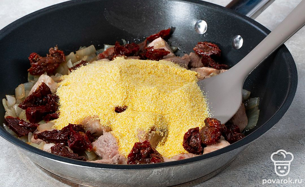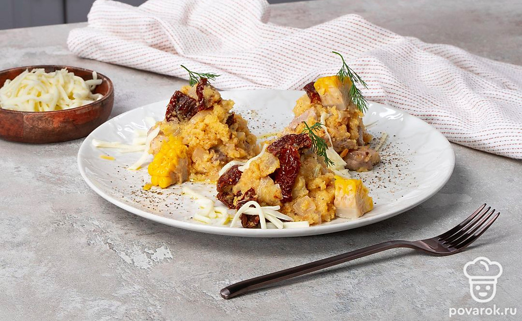Кашу из кукурузы чаще всего готовят на молоке на завтрак, но любителям оригинальных блюд в итальянском стиле понравится каша из кукурузы с вялеными помидорами, которые добавят в блюдо настоящую изюминку и пикантность. Возьмите магазинные томаты или приготовьте самостоятельно. Предстать блюду во всей красе поможет и правильно сваренная кукурузная каша. Поэтому приготовьте посуду с толстым дном, соблюдайте соотношение крупы с водой 1:3 и запаситесь хорошим настроением.