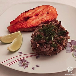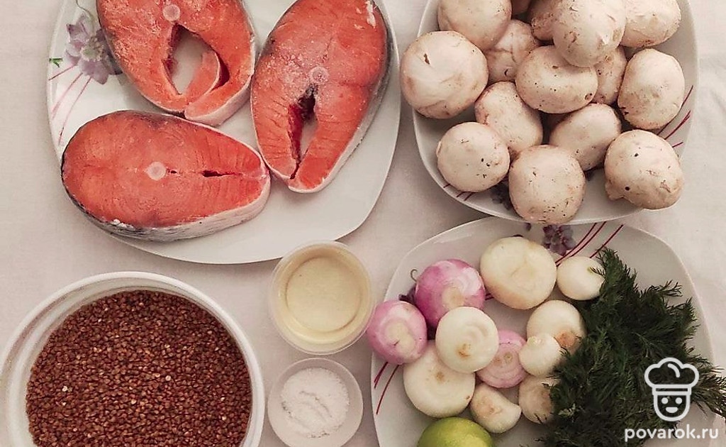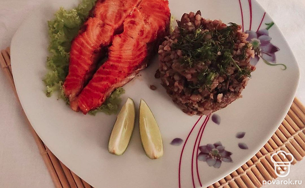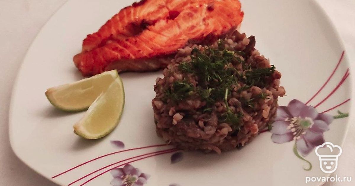 Гречневая каша с шампиньонами и стейками семги — сбалансированное, полезное блюдо, которое с удовольствием будет кушать вся семья. Гречневая крупа — рекордсмен среди каш по содержанию витаминов группы В, ее необходимо включать в рацион почаще. А в семге много омега-3 и омега-6, которые помогают организму бороться со старением.