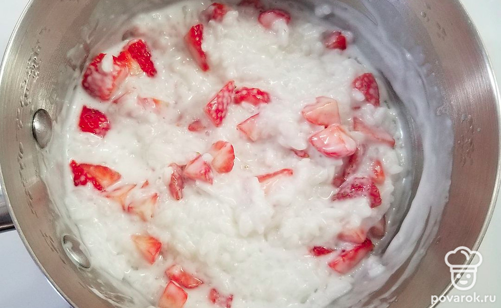 Каши пользуются огромной популярностью и ни один день не обходится без того, чтобы мы ели какую-нибудь из них. Одной из самых популярных каш считается рисовая. Кроме огромного разнообразия сортов риса, его еще можно готовить различными способами, а также сочетать с самыми разными продуктами, получая как соленые, так и сладкие блюда. Рисовая каша на молоке — популярное блюдо на завтрак, ее любят и дети, и взрослые. Попробуйте приготовить рисовую кашу не на обычном, а на кокосовом молоке, и привычная каша приобретет новый вкус и нежный аромат. Добавление свежей или мороженой клубники обогатит кашу витаминами и сделает ее еще более аппетитной.
