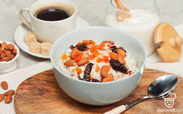 Рисовая каша, приготовленная на молоке, надолго насыщает организм и дает энергию благодаря содержанию сложных углеводов. Это низкокалорийное блюдо, богатое витаминами и микроэлементами. Для молочной каши используйте круглозерные крахмальные сорта риса. Они позволят добиться правильной консистенции нежной молочной каши. Полезны также каши с сухофруктами. Изюм, курага или чернослив станут не только приятным вкусовым дополнением к каше, но и окажут пользу организму.