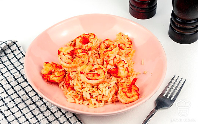 Рис с креветками — горячее блюдо с нежным послевкусием, которое украсит ваш званый обед или ужин. Сочетание сытного гарнира с легким, богатым вкусом креветок покорит гостей за вашим столом. Блюдо отлично сочетается с овощами и легкими полусладкими винами. Сочное блюдо может заменить полноценный ужин. Добавьте к нему немного свежих овощей и сырную нарезку, чтобы не перегружать вкус риса с креветками тяжелыми закусками.