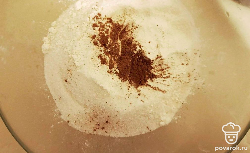 В отдельной миске смешайте все остальные сухие ингредиенты: муку, сахар, разрыхлитель, корицу.