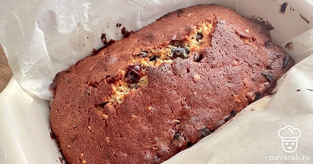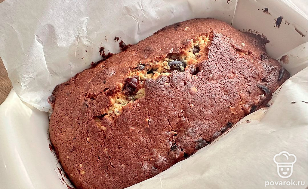 Выложите тесто в форму, застеленную пергаментом, разровняйте. Выпекайте 50 минут при 180 градусах до сухой зубочистки.