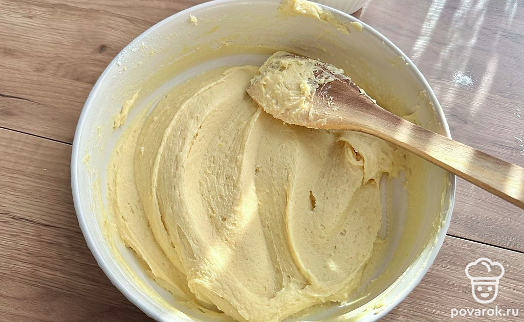 Просейте муку с разрыхлителем, перемешайте до однородности.