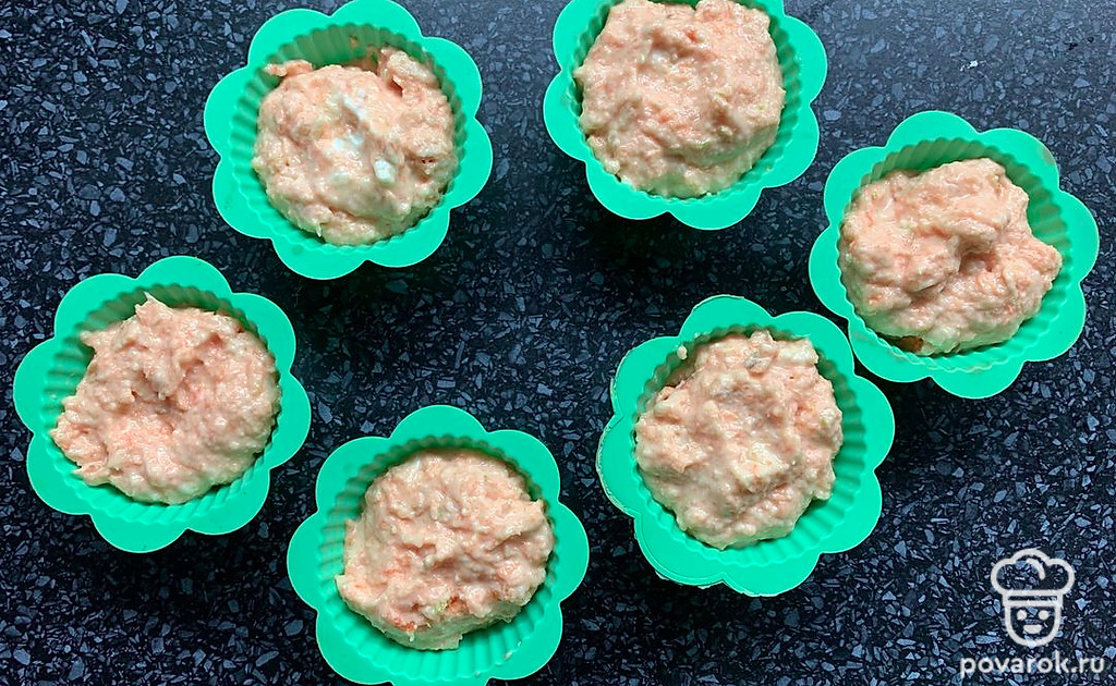 Тесто разложить в формочки и отправить в духовку на 35-45 минут при 180 градусах.