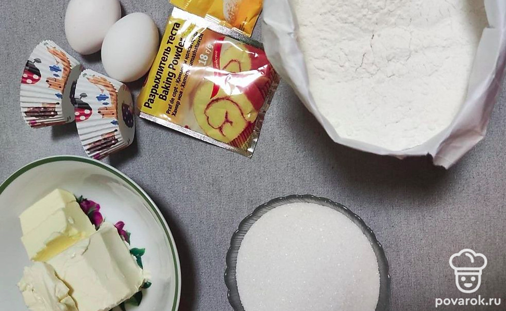 Подготовьте все ингредиенты. Масло и яйца должны быть комнатной температуры. Просейте муку, смешанную с разрыхлителем. Разогрейте духовку до 180 градусов (режим «Верх-низ»).