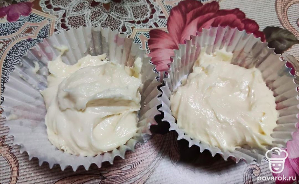 Заполните тестом формочки на 2/3. Отправьте в духовку на 20-25 минут.