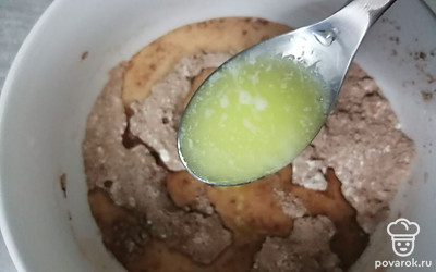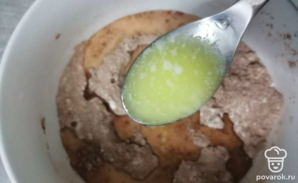 Приправляем растопленным сливочным маслом. Хорошо все перемешиваем.