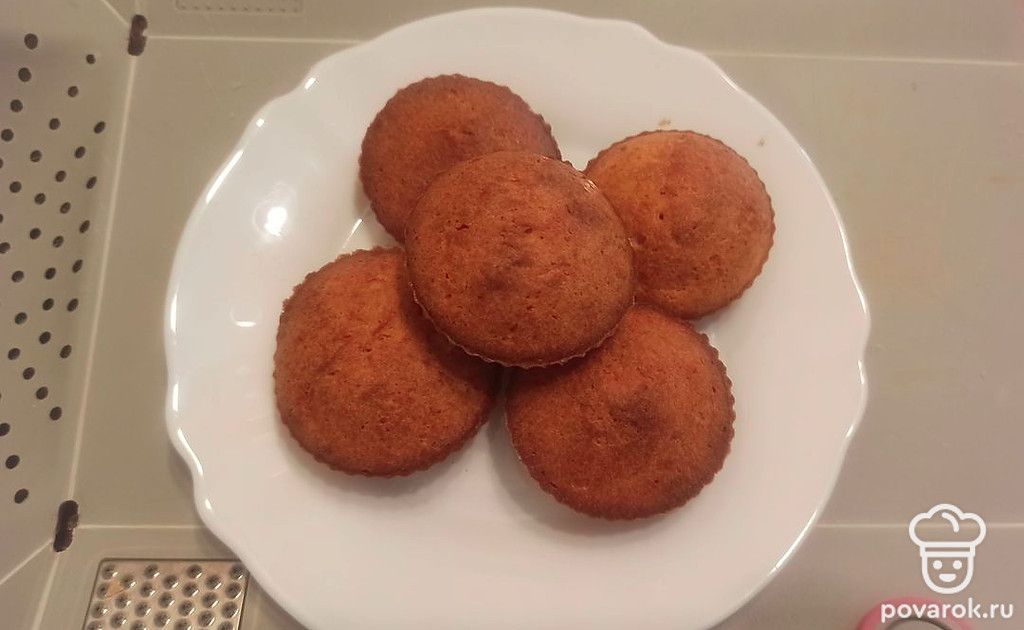 Выкладываем тесто в формочки для кексов и ставим в разогретую до 180 градусов духовку на 30 минут.