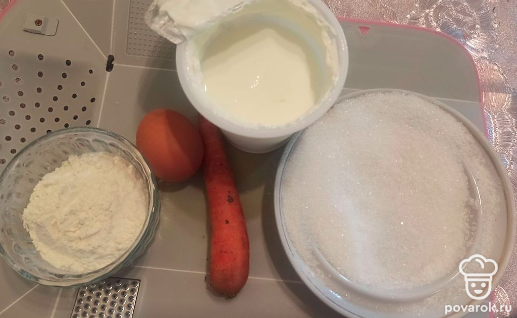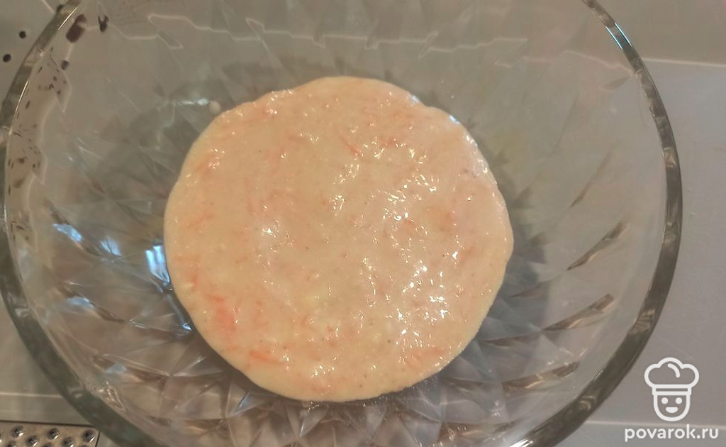 Морковь чистим и натираем на мелкой терке, смешиваем со сметаной и сахаром.