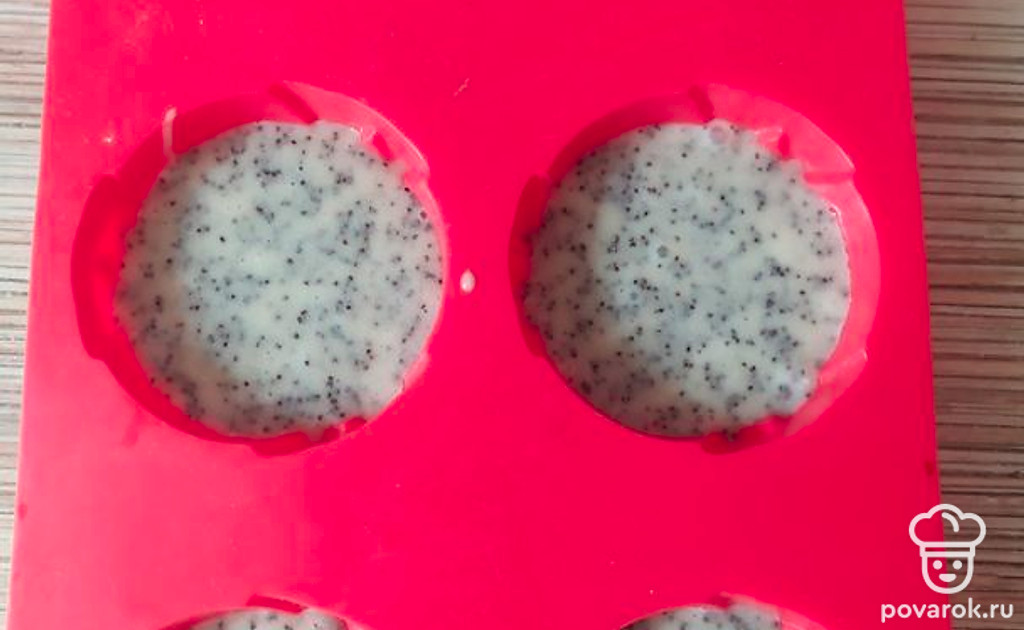 Полученную массу разлить по формочкам, заполняя их наполовину, так как тесто в процессе выпечки хорошо поднимается.