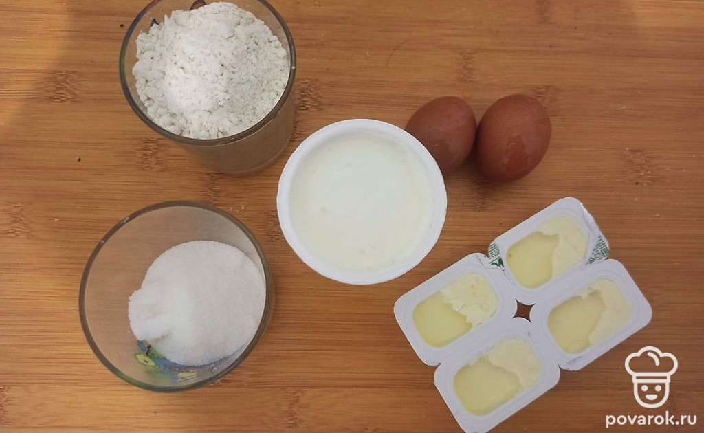 Кефир смешайте с сахаром, яйцами и щепоткой соли.