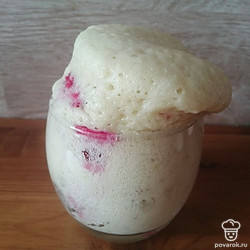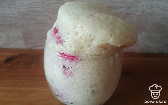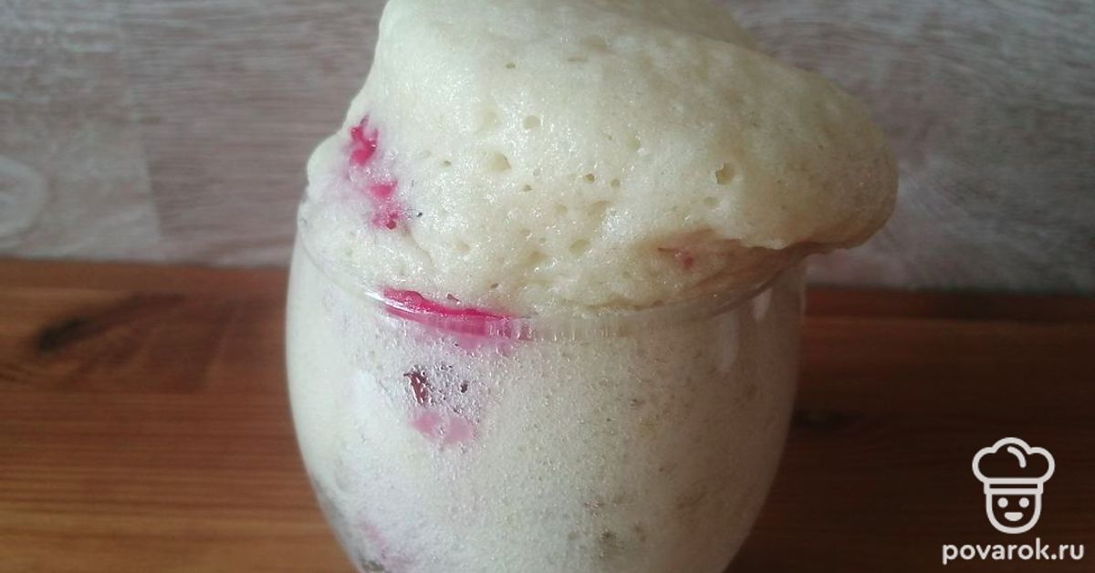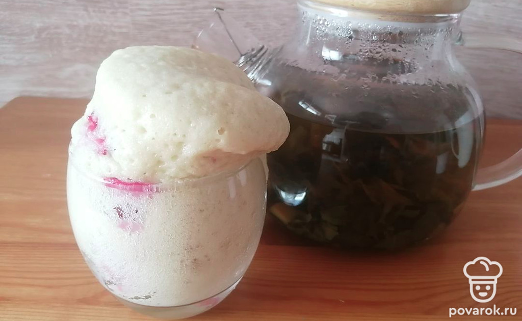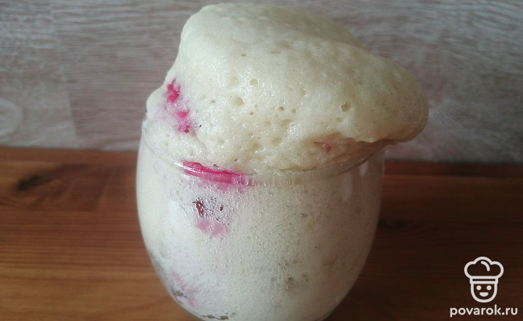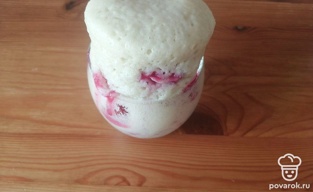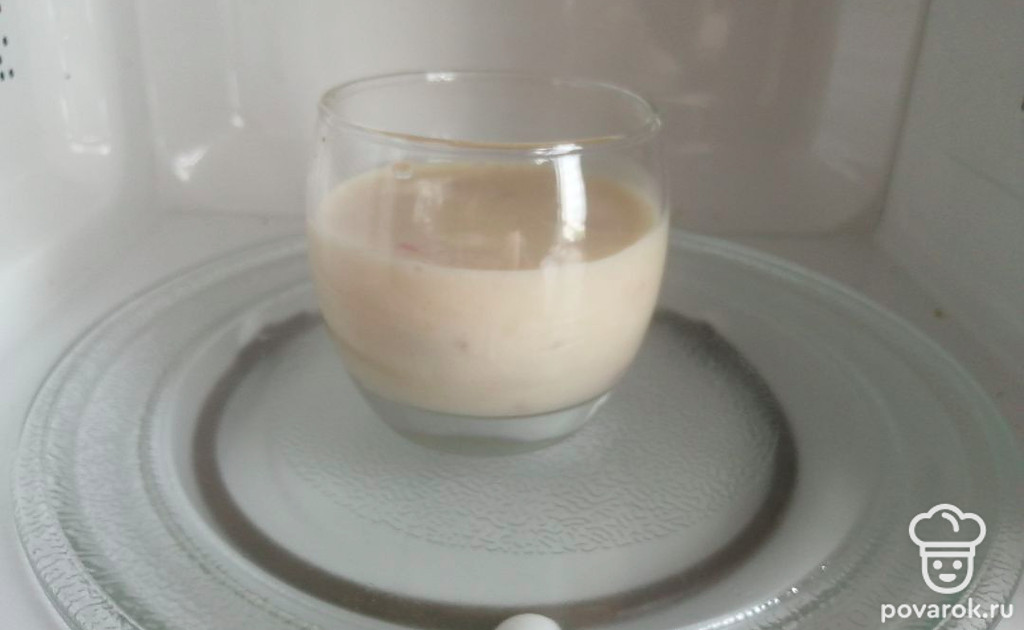 Тесто выложить в стакан и поставить в микровалновую печь на 2,5 минуты.