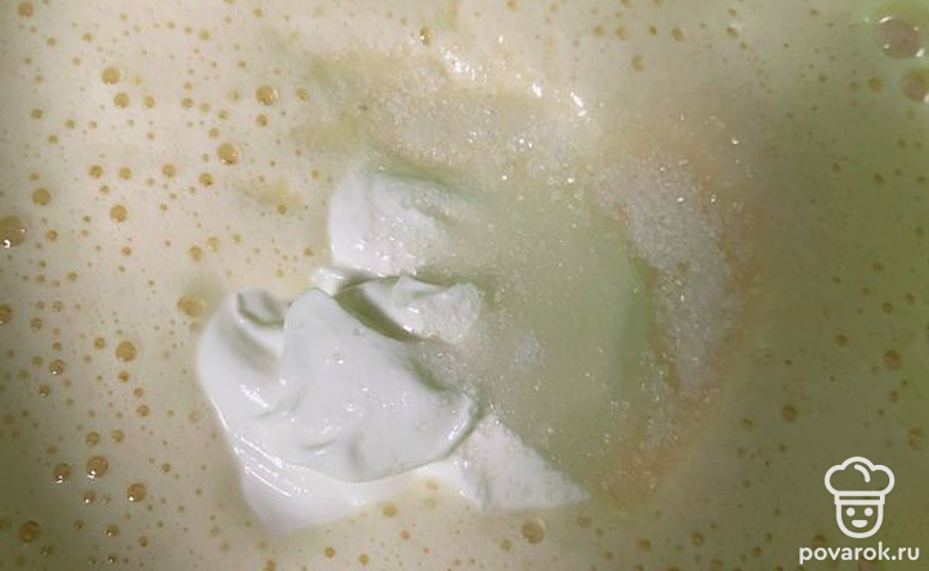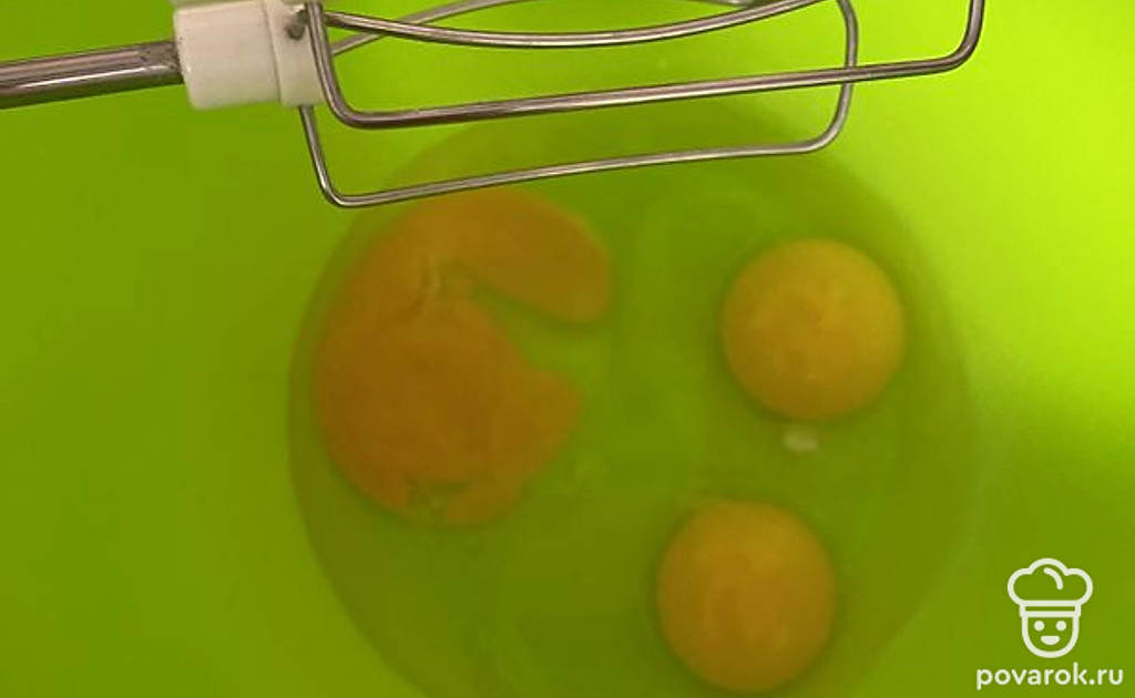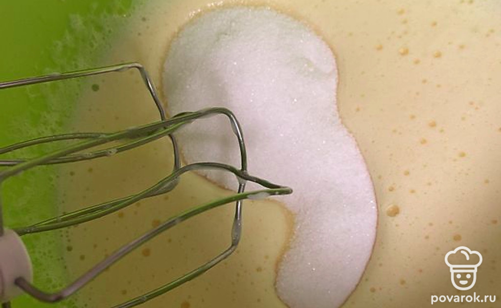 Во взбитые яйца добавьте сахар. Снова взбейте.