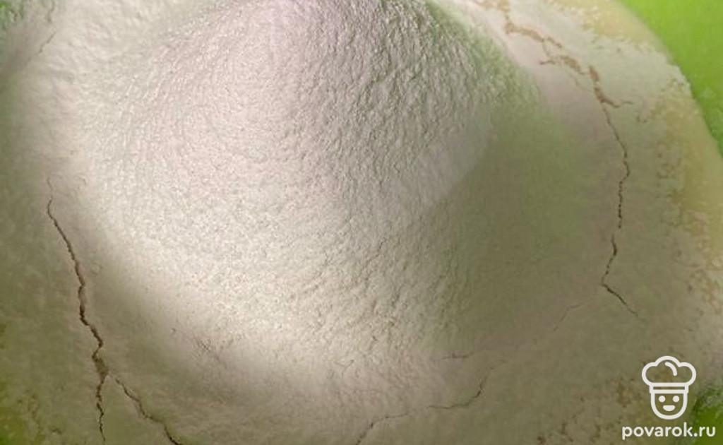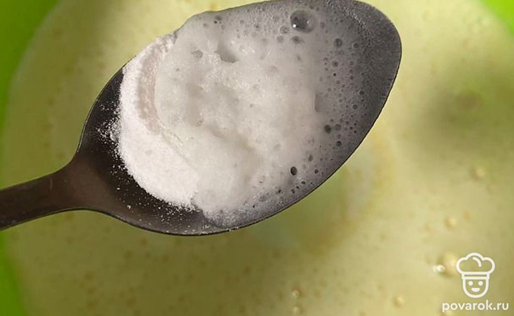Соду погасите 9% уксусом, добавьте в смесь, перемешайте.