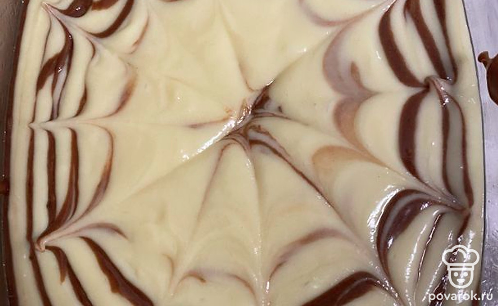 По желанию можно нарисовать рисунок зубочисткой. Теперь убирайте в духовку на 40 минут при 180 градусах.