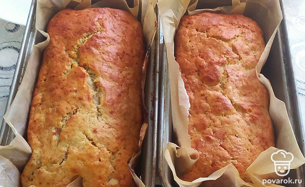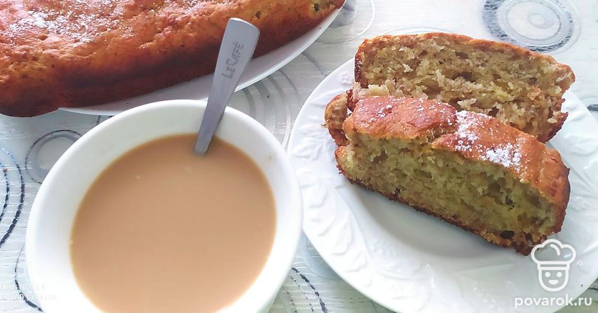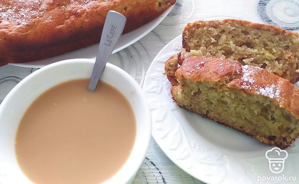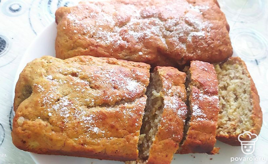 Ароматный и воздушный банановый кекс готов! Перед подачей посыпать кекс сахарной пудрой и подать к чаю или кофе.
