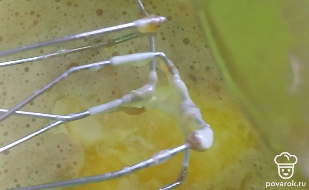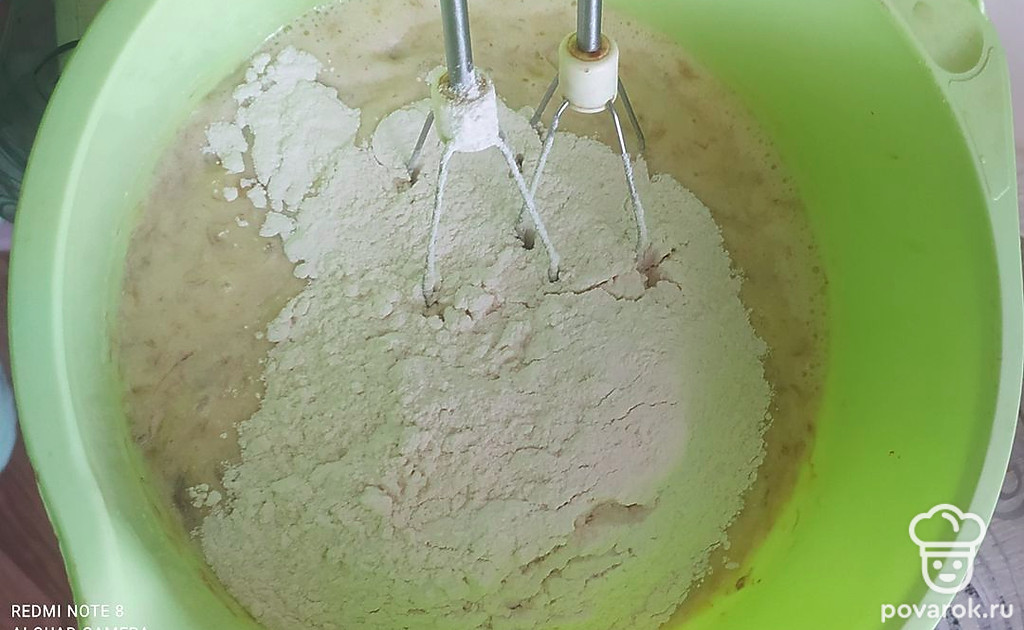 Добавить к массе просеянную муку с разрыхлителем, снова хорошенько перемешать.