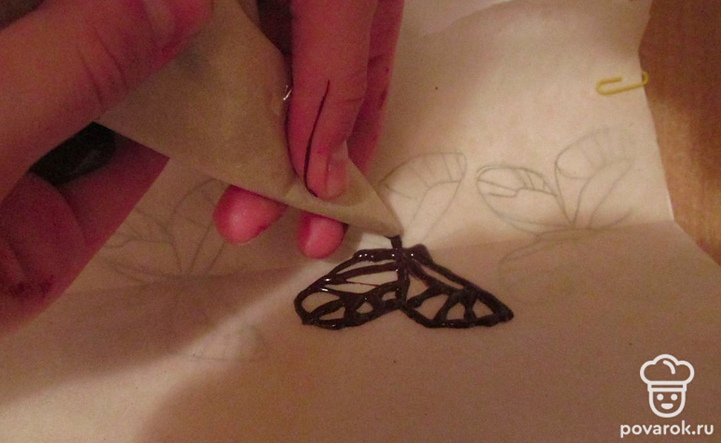 Также можно сделать украшения для кексов из шоколада: растопите шоколад и наполните им кондитерский мешок. На бумаге для выпечки нарисуйте любые фигурки. Отправьте на 10 минут в морозилку застывать, и украшение готово.