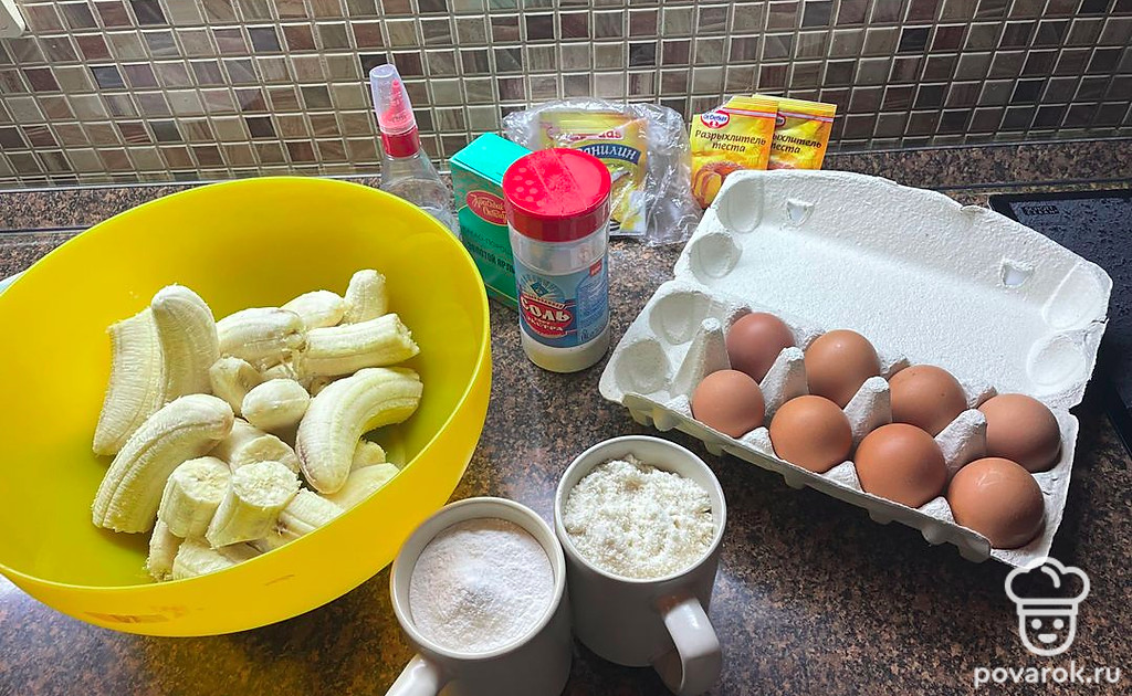 Подготовьте все ингредиенты. Рецепт даю на 1 банан. Уверена, когда попробуете, следующий раз готовить будете в большем объёме.