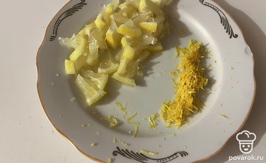 С одного лимона снимите цедру, и сам лимон нарежьте на маленькие кусочки.