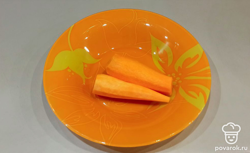 Помыли, почистили морковь, у меня были не очень большие экземпляры, поэтому взяла 2 шт.