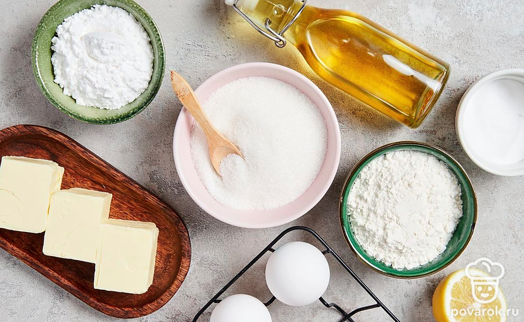 Лимон промойте и обсушите. Сполосните яйца, обсушите их полотенцем. У одного яйца отделите белок от желтка. Выложите маргарин из холодильника. Просейте муку. Подготовьте форму для выпечки, смажьте ее подсолнечным маслом. Разогрейте духовку до 180 градусов.