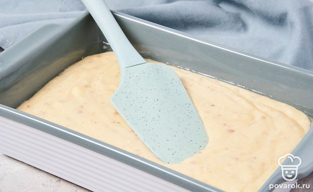 Сделайте кекс. Переложите тесто в форму и поставьте ее в духовку на 40 минут. Достаньте кекс и оставьте его остужаться. В миске смешайте сахарную пудру и яичный белок, взбивайте их венчиком до образования глазури. Промажьте кекс получившейся смесью.