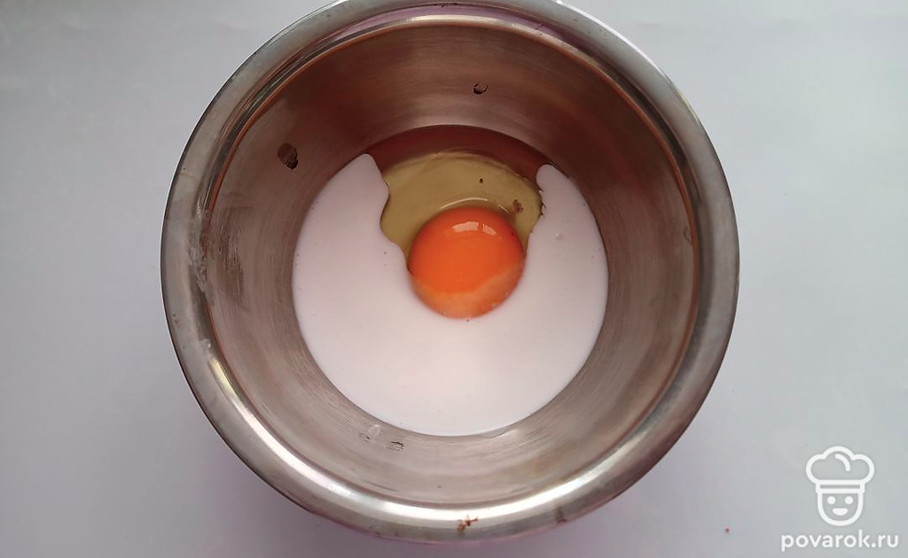 Смешать сливки и яйцо.