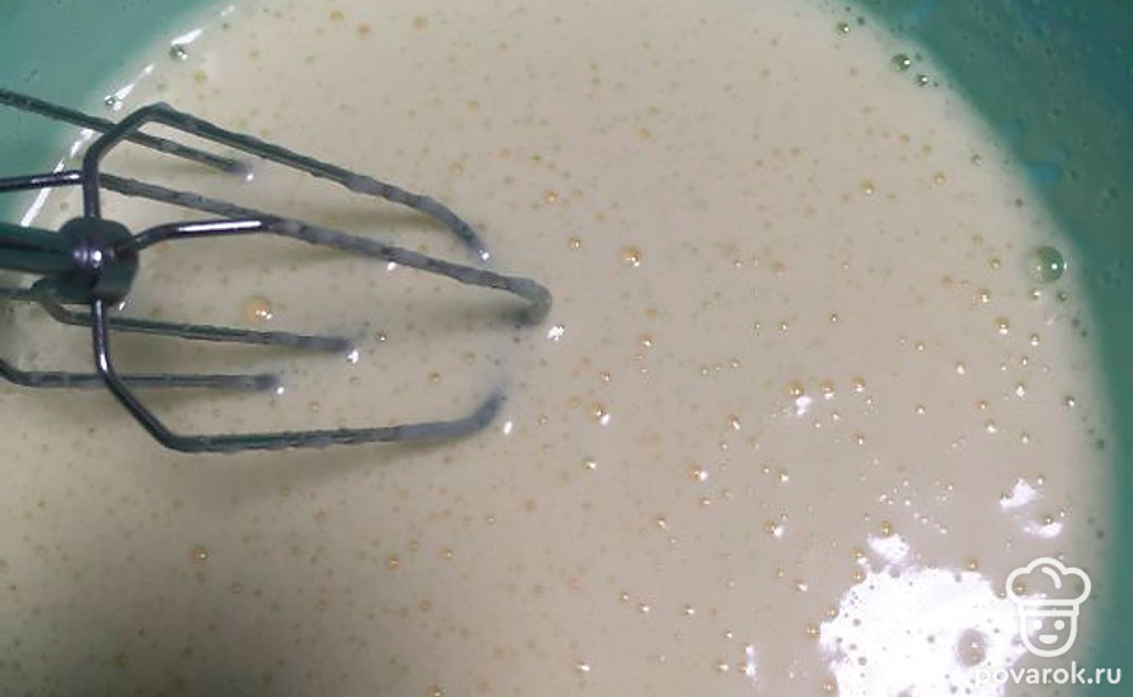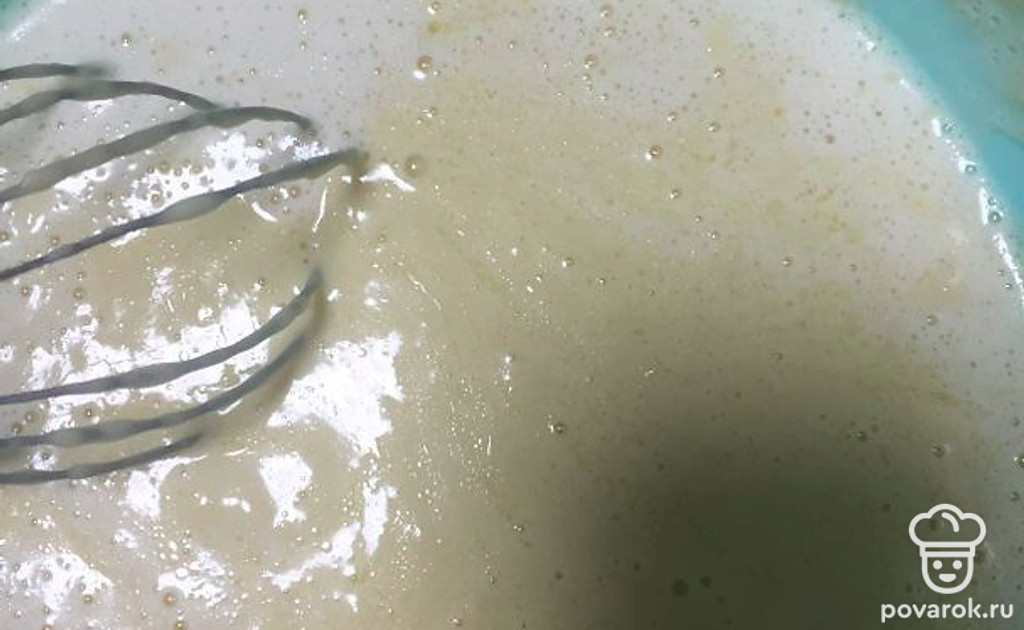 Молоко с маслом добавляем в тесто и перемешиваем.