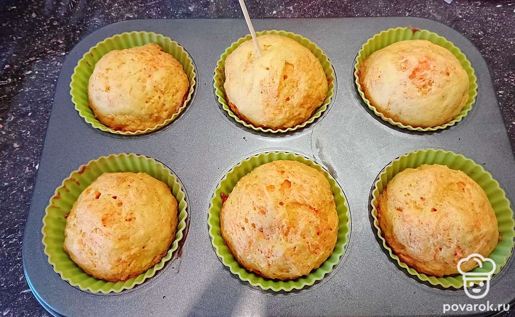 Поставить в духовку, разогретую до 200 градусов, на 20-25 минут. Готовность проверить зубочисткой.