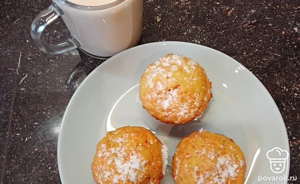 Готовые кексы можно посыпать сахарной пудрой и подать с молоком.