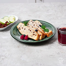 Постный кекс с изюмом перед подачей оформите сахарной пудрой.