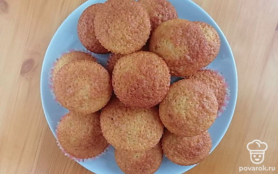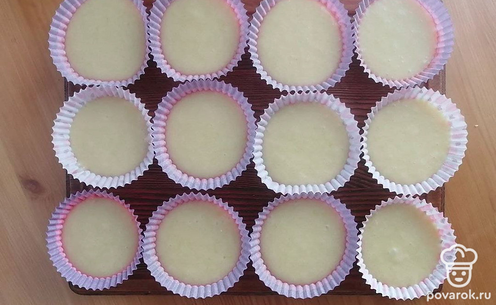 Добавьте в тесто сок лимонов и перемешайте. В последнюю очередь добавьте лимонную цедру. Ещё раз тщательно перемешайте. Выложите тесто в бумажные или силиконовые формочки для кексов, заполняя их примерно на две трети. Поместите формочки с тестом в предварительно разогретую до 180°C духовку. Выпекайте кексы примерно 25–30 минут.