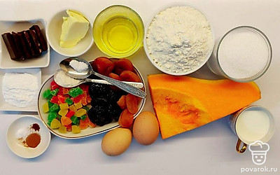 Тыква — полезный овощ с оранжевой сладкой мякотью. Она известна уже более 5 тысяч лет и количество блюд, которые из нее готовят, невозможно перечислить. Предлагаем вам испечь пряный кекс на основе тыквенного пюре с добавлением цукатов и сухофруктов. Приготовить его довольно легко и много времени не займет. Готовый десерт полейте шоколадной глазурью и присыпьте сахарной пудрой.