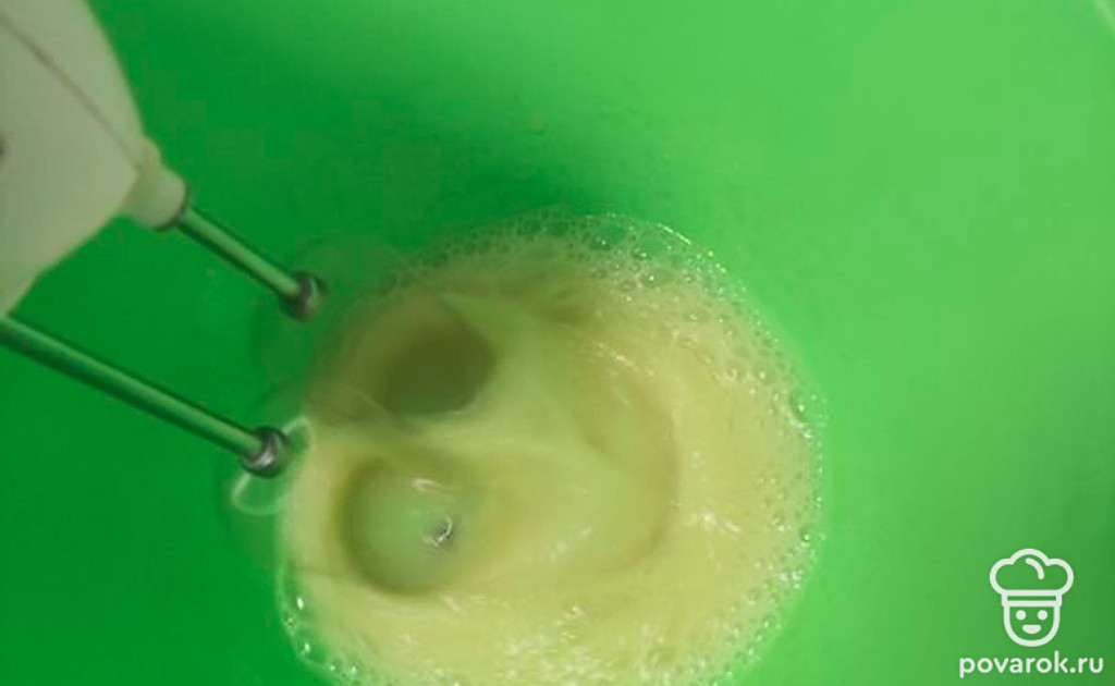 Разбейте яйца. Взбивайте 3 минуты.