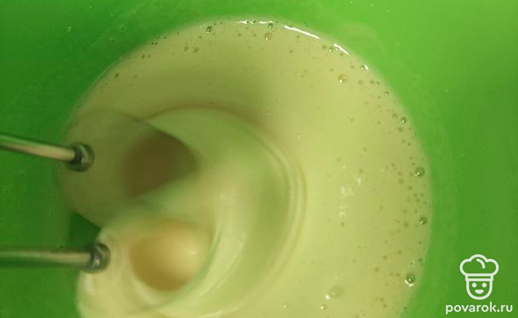 Добавьте сахар. Продолжайте взбивать еще 2-3 минуты.