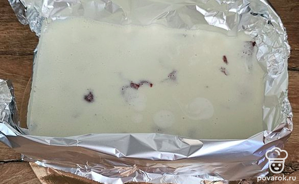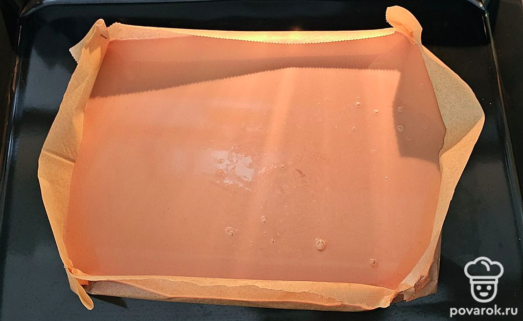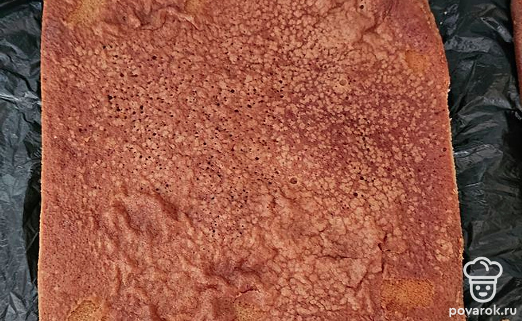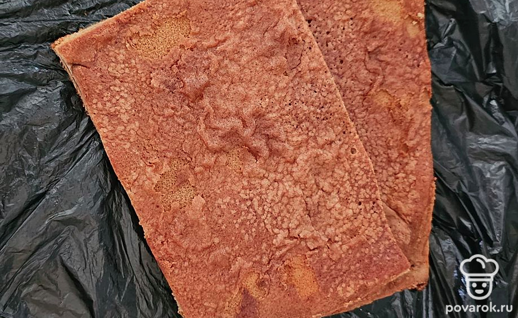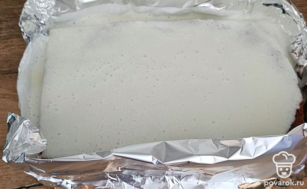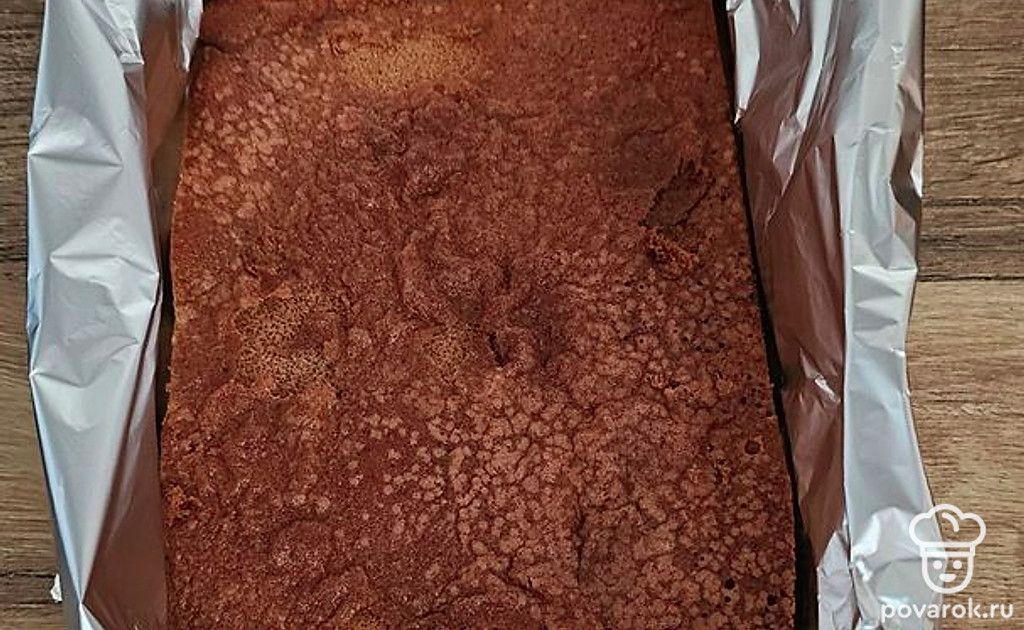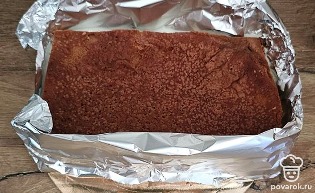 Из фольги можно сделать форму. Выложите слой бисквита.