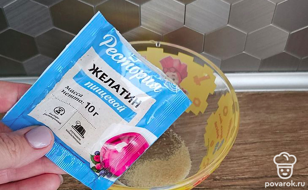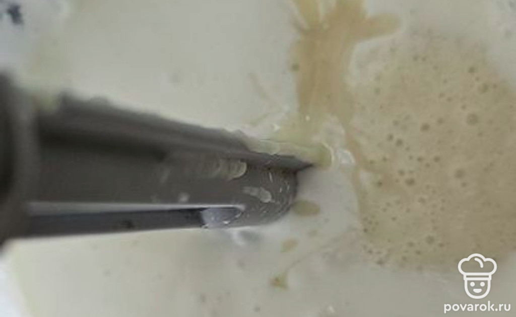 Сгущенку, сливки и желатин объедините. Хорошо взбейте.