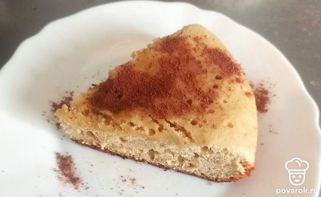 Подавайте порционно, нарезав на кусочки и посыпав какао-порошком.