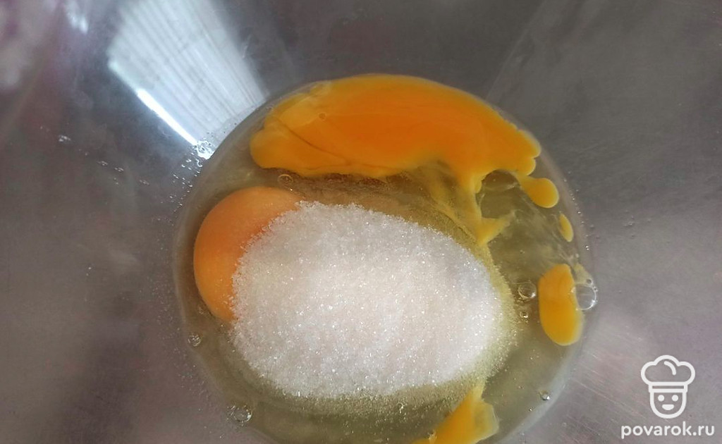 Яйца взбейте с сахаром.