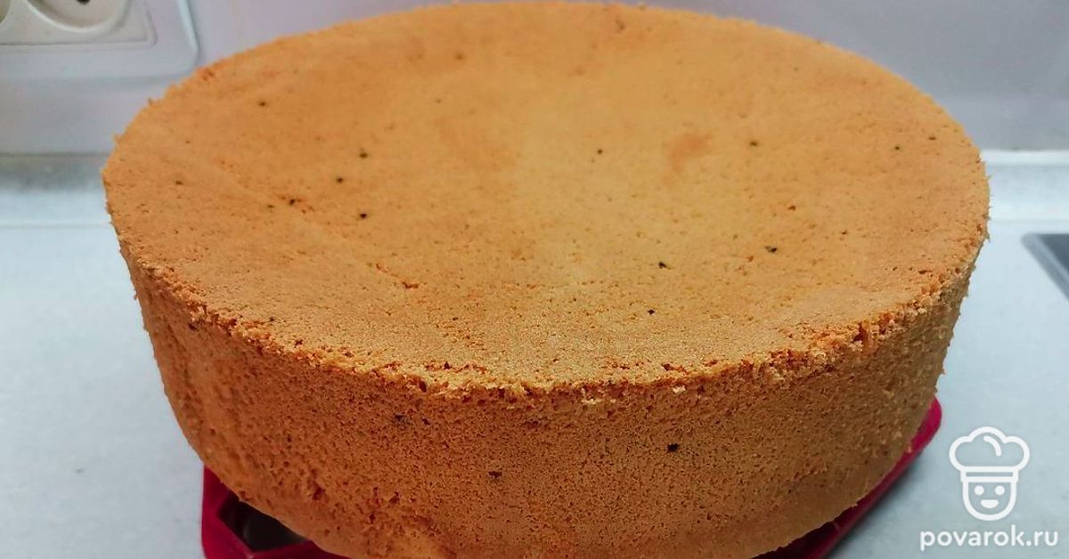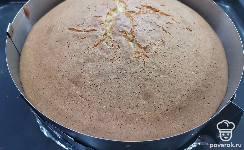 Бисквит достаньте из кольца. Переверните на решетку и дайте полностью остыть. Отправьте в холодильник минимум на 3 часа. Можете использовать бисквит для приготовления торта. Приятного аппетита!