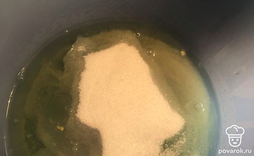 Разбейте яйца, отделите белки от желтков и добавьте сахар в белки.