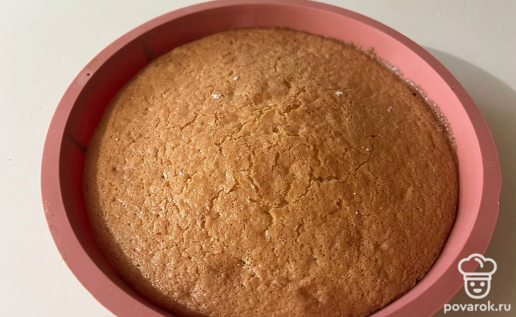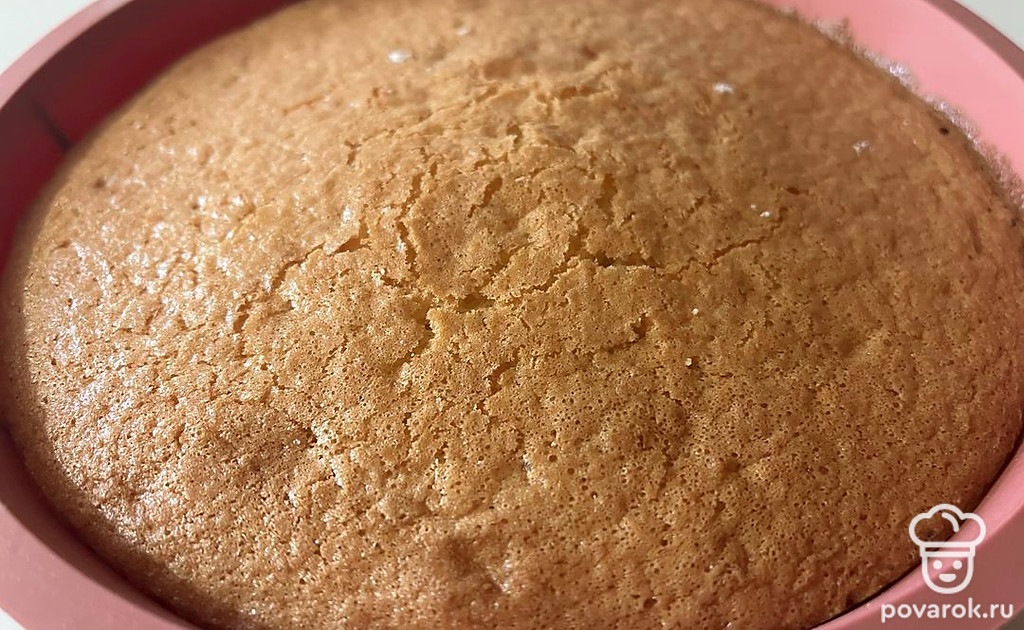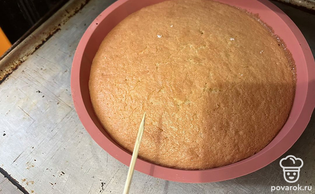 Готовность бисквита проверяйте шпажкой. Введите ее в центр бисквита и достаньте. Если шпажка выходит сухая, то бисквит готов.