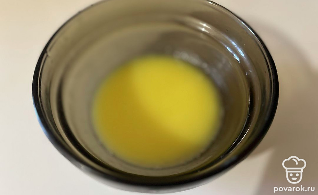 В отдельной емкости растопите сливочное масло и отставьте его остужаться.