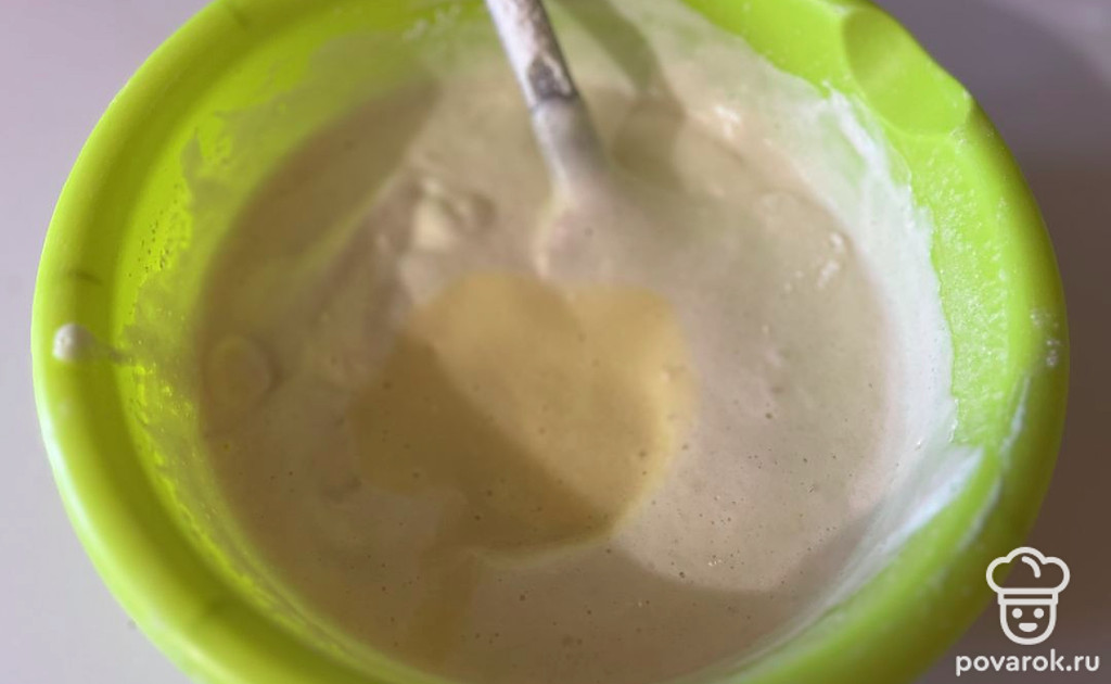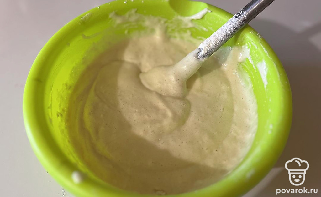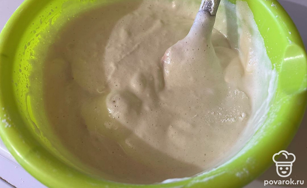 Каждый раз перемешивайте тесто лопаткой в одном направлении «сверху вниз».