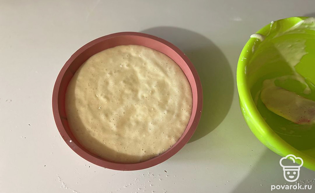 Переместите тесто в форму и отправьте выпекаться в духовку на 30-35 минут при 180 градусах.