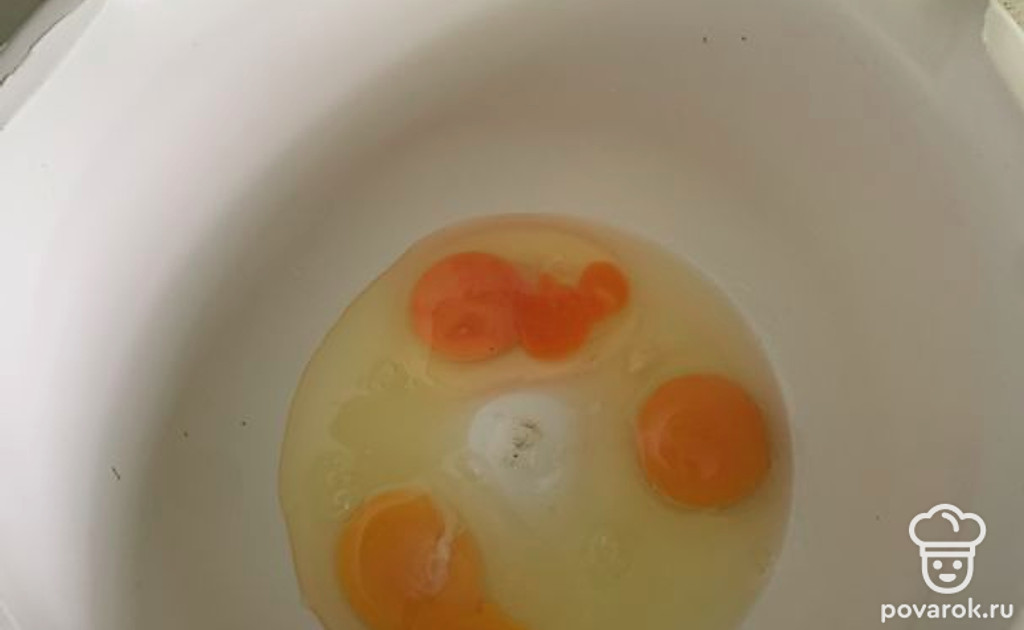 Натрите морковь на мелкой терке и нарубите мелко орехи. Отложите. Разбейте в миску яйца.