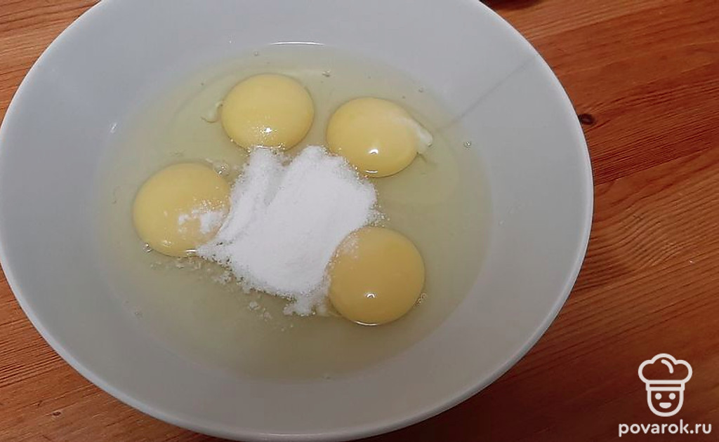 Разбить 4 яйца в глубокую тарелку.
