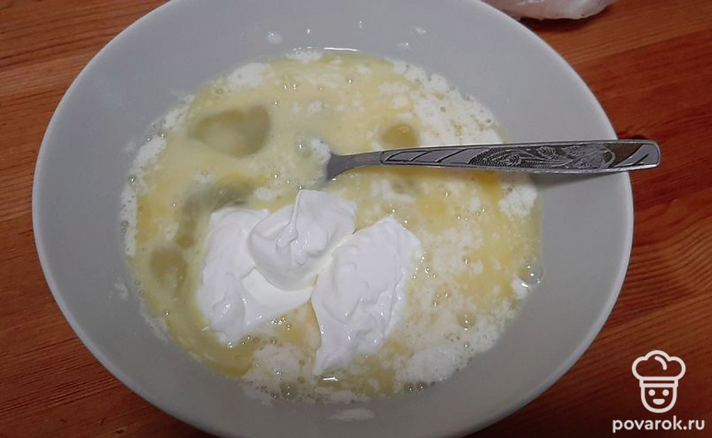 Добавить 3 столовые ложки сметаны и все перемешать.